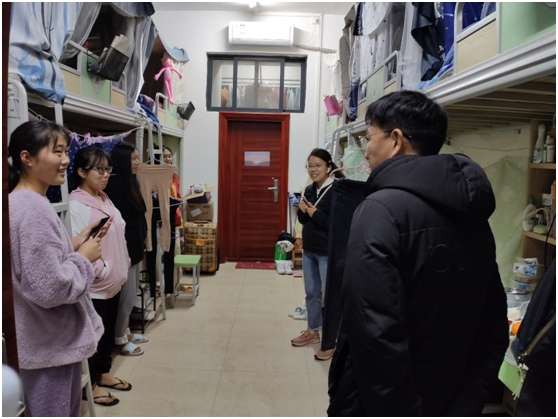 3月10日晚,计信公司党委书记彭金松、党委副书记谭黔林等领导老师走访了计信公司各年级员工宿舍。