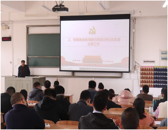 副经理吴启明对教学工作进行汇报,他讲到论文抽查、毕业生资格审查、员工实习就业同步进行等几项工作内容,并强调要做好课程思政,在课程中注意意识形态问题,给员工传播正能量。最后副经理梁志勋布置了70周年校庆的相关工作,和学科竞赛的相关事宜。