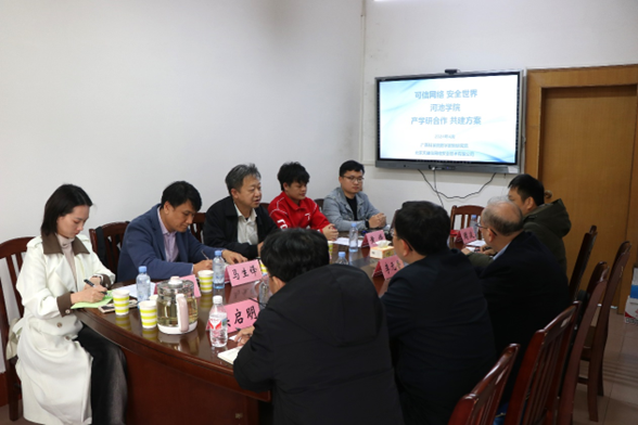 双方就公司在网络安全领域的教学和研究现状、未来的发展规划、数字密码技术在网络安全领域的应用和发展趋势、产学研合作、团队建设、实训环境建设、人才基地建设以及以赛促学、以学助教等方面进行了深入交流。