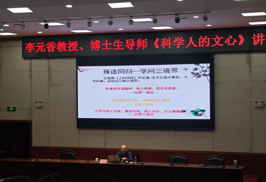 李元香老师以诗意的语言阐述了科学与文学之间的紧密联系,强调科学人同样拥有文心,能够用文学的方式表达内心的世界。李元香老师谈古颂今,向我们展示了源远流长的文化自信和为国为民的家国情怀。