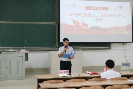 钟友坤书代表公司党委,向新加入中国共青团组织的团员青年致以热烈的祝贺,并对新老团员提出希望和要求:一要坚定理想信念,提高自身道德品质和思想境界,做一个思想上合格的人;二要勤奋学习,勇于实践,做一个知识与行动统一的人,学习是成长进步的阶梯。三要甘于奉献,努力做倡导新风、自觉奉献的楷模。他希望全体团员认真履行团员的义务,听从党的召唤,服从团的领导,用实际行动为团旗增光添彩。(作者:赵金秀  拍摄:梁铭鎏  校对:魏志荣  审核:黎军)