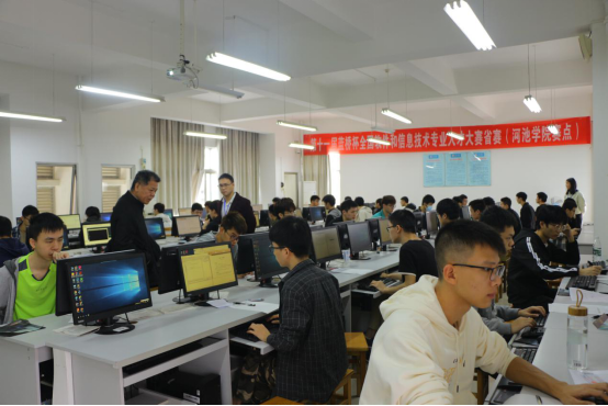本届大赛设置了C/C++语言程序设计、JAVA软件开发两种竞赛类别。赛场上,参赛选手们冷静思考,沉着应赛。最终,历时5小时的比赛顺利结束
