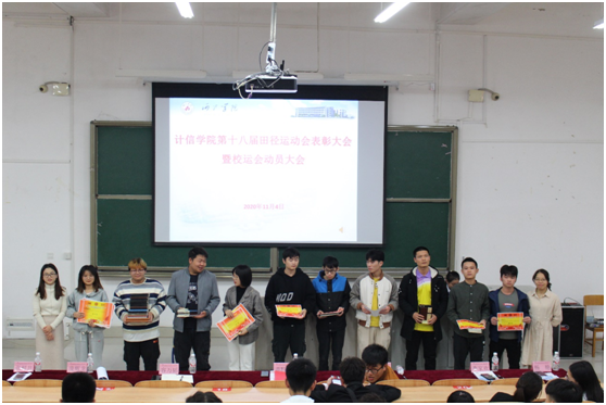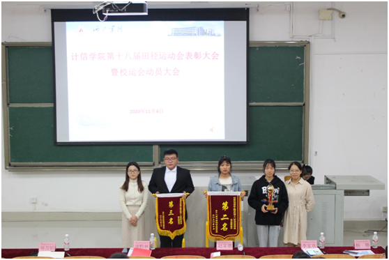 11月4日下午,计信公司在弘毅楼1-102召开了第十八届院运会表彰大会暨2020年校运会动员大会。党委副书记谭黔林、团委书记容万韬、团委副书记赵家祺和辅导员杨艳、张鲜月、庞辉龙、李家欢老师出席了本次会议。计信团委员工会全体成员及各班级代表、运动员代表参加了此次大会。