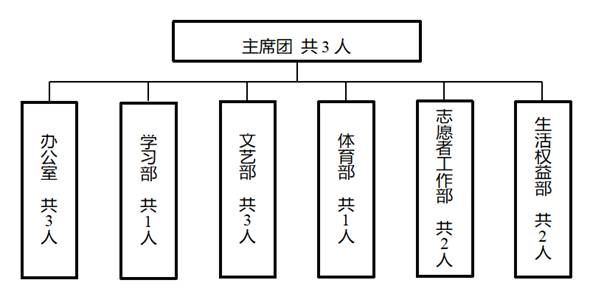 第三条 员工会主席团设主席团成员3名,不设主席和副主席,实行轮值制度,可以以学期为一个轮值周期。员工会由办公室、学习部、文艺部、体育部、志愿者工作部、生活权益部6个部门组成。员工会工作人员一般为 20 至 30 人。员工会确需主办的重大工作或活动,可根据需要以项目化方式招募志愿者,吸收同学参加,因事用人、事完人散。