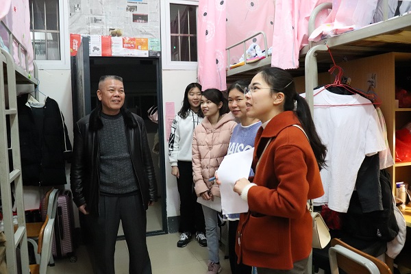 新学期,新气象,为更好了解公司员工返校情况以及员工返校精神面貌,2019年3月3日晚上8点,公司党委书记彭金松、经理林芳等公司领导以及各年级辅导员、班主任一行在员工代表的陪同下开展了新学期第一次寝室走访活动。