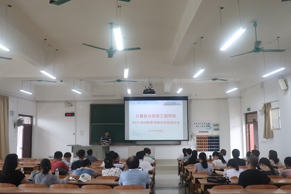9月8日上午,计信公司在弘毅楼2-507教室召开2019年秋季学期全体教师会议,布置本学期工作。经理林芳主持会议,全体教师参加会议。