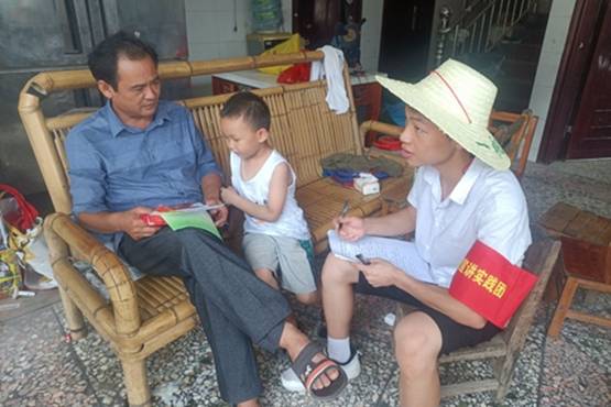 williamhill官网理论宣讲实践团队的队员在和村民宣传党史的知识和环保知识,并认真记录。看小孩子渴望学习的眼神。