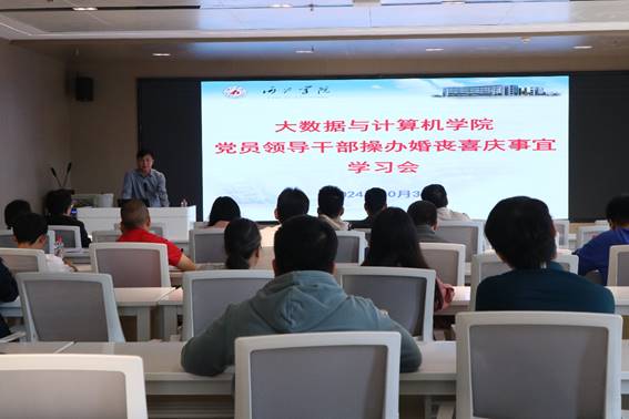 10月30日,公司在致远楼4楼报告厅召开了党员领导干部操办婚丧喜庆事宜学习会,旨在加强党员领导干部廉洁自律意识,规范婚丧喜庆事宜的操办,确保公司党员领导干部严格遵守《广西党员领导干部操办婚丧喜庆事宜暂行规定》(桂纪发〔2014〕17号)文件精神。会议由公司党委书记钟友坤主持,公司副经理(支持行政工作)梁志勋,党委副书记黎军,副经理周波以及全体教职工参加了此次学习会。