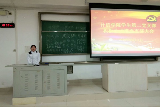 4月11日下午17:20,计信公司员工第二党支部于东区弘毅楼2-506教室和2-503教室,召开积极分子推选大会,本次会议由谢贻鑫和叶露主持,支部全体成员参加会议。