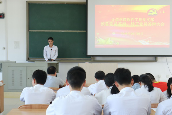6月3日下午17点,计信公司软件工程党支部于东区弘毅楼2-506召开关于接收周春泉、黄俊斯、龙鑫、吕日剑4位同志为预备党员的答辩大会以及关于韦兰梦、程艺明、凌怡、庞辉龙、石志军5位同志转正的答辩大会。本次会议由支部书记肖辉辉同志主持。计信公司软件工程党支部全体成员参加会议。