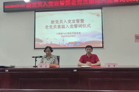 2022年6月30日下午,大数据公司党委在逸夫楼407举行新党员入党宣誓暨老党员重温入党誓词仪式。本次仪式由党委副书记黎军主持,大数据公司党委书记魏菱和新老党员参加。