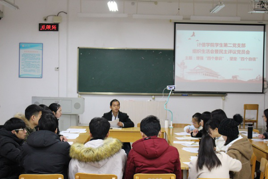 为深入学习领会习近平新时代中国特色社会主义思想,贯彻落实党的十九大精神,增强党支部成员间的凝聚力以及积极性。员工第二党支部于1月8日下午17点30分于弘毅楼3-401召开主题为增强“四个意识”,坚定“四个自信”的组织生活会暨民主评议党员会议。支部全体党员参加会议,会议由支部书记容万韬主持。
