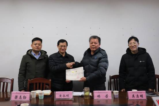 最后,林芳宣布大数据公司将聘请黄永明为公司兼职教授,任期三年,并颁发聘书合影留念。