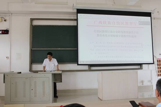 党委书记彭金松先传达了《自治区教育厅办公室转发教育部关于在教育系统开展师德专题教育的通知》要求,他带领大家学习习近平总书记关于师德师风的重要论述摘编,号召大家做有理想信念、有道德情操、有扎实学识、有仁爱之心的四有好老师。