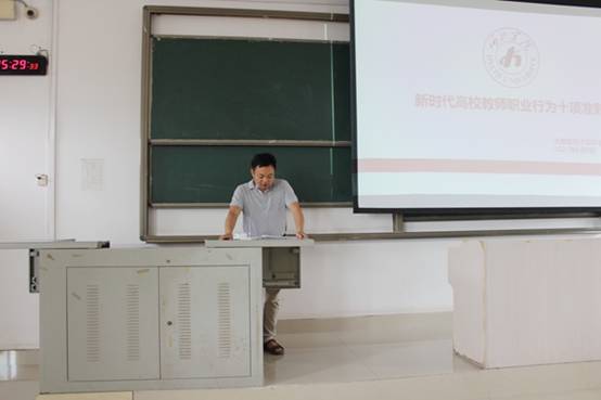 副经理梁志勋则接着讲到违反新时代高校教师职业行为十项准则的案例,对大家进行警示教育。