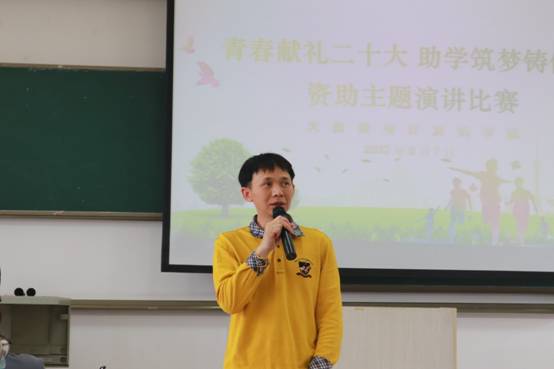 为进一步加老员工资助政策宣传力度,积极营造喜迎党的二十大的浓厚氛围,确保国家员工资助政策家喻户晓、深入人心。5月7日15:00,大数据公司于弘毅楼2-507举行2022年“青春献礼二十大 助学筑梦铸信念”资助主题演讲比赛。党委副书记黎军、辅导员范源源、叶自强、庞辉龙、蓝消蔓出席比赛并担任评委。