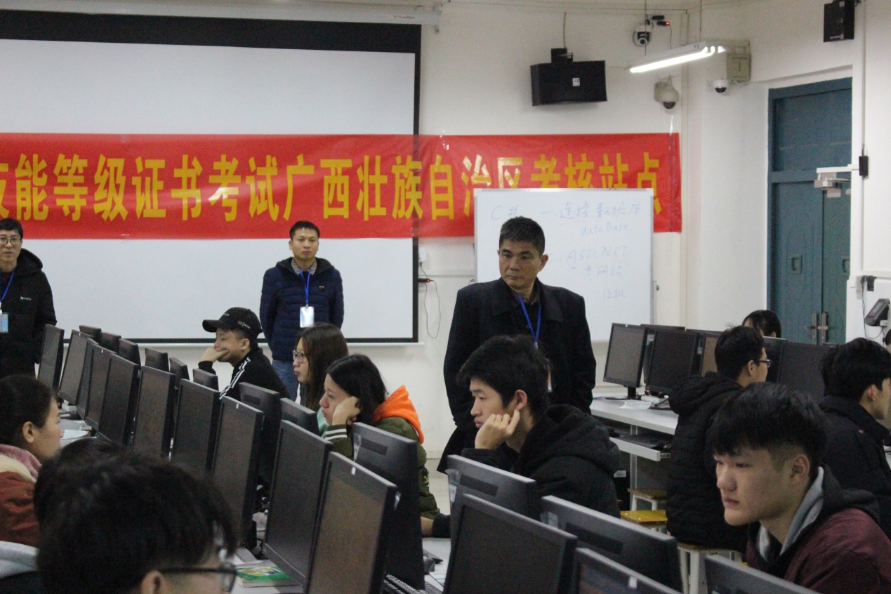 根据《教育部等四部门印发<关于在院校实施“学历证书+若干职业技能等级证书”制度试点方案>的通知》(教职成﹝2019﹞6 号)、《关于做好首批 1+X 证书制度试点工作的通知》(教职成﹝2019﹞36 号)和《教育部办公厅国家发展改革委办公厅 财政部办公厅关于推进 1+X 证书制度试点工作的指导意见》(教职成厅函﹝2019﹞19 号)要求。在公司党委领导下,由教务处和计算机与信息工程公司共同承办的,全国Web前端开发“1+X”职业技能等级证书考试完成首考。12月28日上午,在逸夫楼404、405、410、610教室来自公司计信、物电、数统等公司的139名考生参加本次考试。计信公司党委书记彭金松、教务处副处长唐吉深、计信公司副经理吴启明等巡查考试。