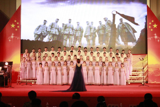 合唱队伍用独具匠心的唱法和服饰、大气磅礴的歌声和铿锵有力的旋律歌颂了为祖国默默奉献的英雄,合唱结束后,指挥学姐的莞尔一笑,优雅的一鞠,合唱圆满结束