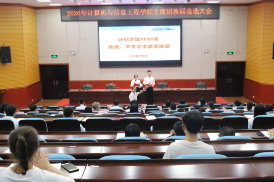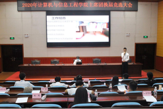 为加强计信公司团委、员工会的组织管理,充分发挥公司团委、员工会服务公司、服务同学的主体作用。7月3日晚,计信公司于弘毅楼1-205举行主席团换届竞选大会。计信公司团委书记容万韬老师、兼职团委副书记赵家祺老师、辅导员杨艳老师出席了本次会议,集团“四大组织”(校团委、校员工会、校志联、校社联)及各二级公司代表、18级计信团学组织全体成员、18和19级班委组成的大众评委参加了此次会议。